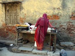 (右)同じく、道端で営業するアイロンがけ屋さん |
