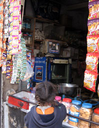 (左)スラム街の中を網の目のように走る小路 (右)駄菓子屋さん