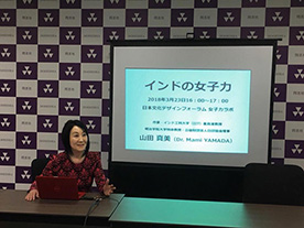 日本文化デザインフォーラム女子力ラボにて「インドの女子力」をテーマに講演(於・同志社大学東京キャンパス)。 |
