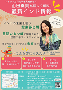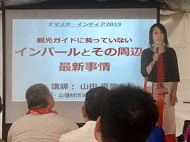 ナマステ・インディアに合わせて別会場で開催された「山田真美が詳しく解説!インド最新情報」(主催:公益財団法人日印協会)にて講師を務める。 |