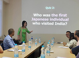 Culture and Society, Major Influences from India"をテーマに講演(於・JST外国人研究者宿舎二の宮ハウス)。 |