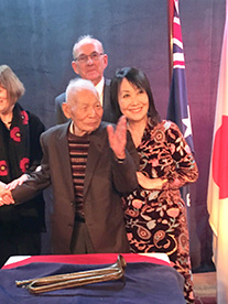 元日本兵でカウラ事件サバイバーの村上輝夫さん(98歳)と共に、カウラ事件75周年記念式典に参加(於・豪州カウラ市)。