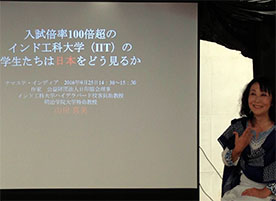 ナマステ・インディア特別セミナーにて「『インド工科大学マミ先生のノープロブレムじゃないインド体験記』執筆秘話」と題して講演(主催:公益財団法人日印協会)。 |
