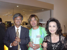 女優の蜷川有紀さん、私、プロデューサーの河原敏文