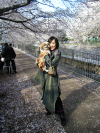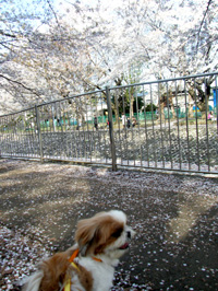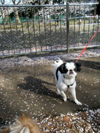 せっかくこんなに桜が咲いているのに、2匹とも上を見ようともしません(苦笑) |