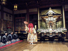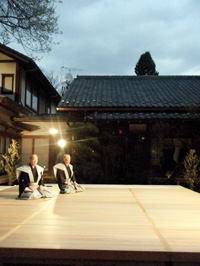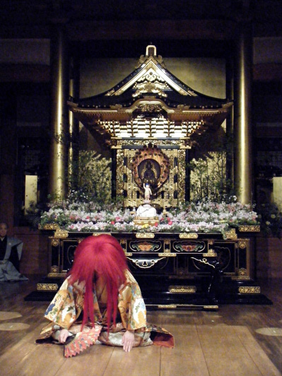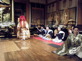 場所をお寺の本堂に移し、お能「猩猩乱(しょうじょうらん)」の開演です。曼荼羅や明王像とお能の
