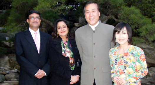(左から)ゲストで友人の駐日インド公使サンジェイ・バタチャリアさんご夫妻、俳優の滝田栄さん、私