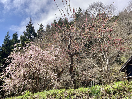 そうやって私が忙しく走り回っているあいだに、今年も山小屋の梅と桜が見事な花を咲かせてくれました。