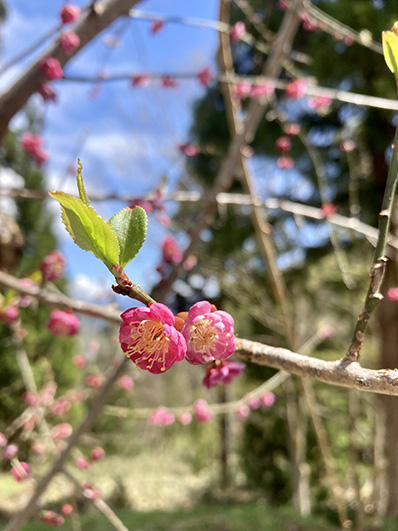 こちらは梅。可憐です。去年は大量の実が生りました。