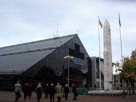 (左)BBCの右側に映っている卵型の建物では、会議初日にパーティーが開かれました