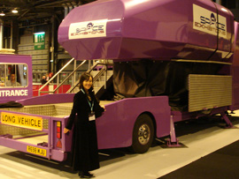 宇宙関係の国際学会にて。右は宇宙旅行(?)の体験マシン