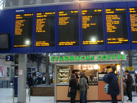 朝のグラスゴー駅。人々が着ている服は黒っぽいものが多く、お天気と同じく暗く重厚な感じでした |
