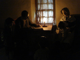 (左)バーンズの生家の入り口 (右)当時のバーンズ家を再現した蝋人形がリアルです。
