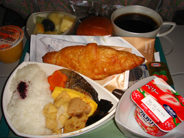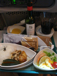関空からドバイへの航路で出た食事。イスラム圏だからと言って、特に変わったところは