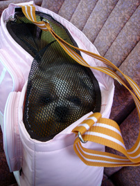 入ったブースケ。怪しい網タイツ犬