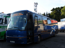 (左)ネス湖行きの観光バス。初老の運転手さんは"horrible weather!"と顔をしかめていました