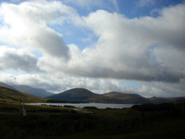 ネス湖を目指してグラスゴーから一路北上を続けていると、平坦だった風景が一変。小高い丘のような低山があちらこちらに現われはじめました。