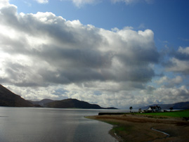 ネス湖にて。長さ35キロ×幅2キロと極端に細長いため、湖と言うより河のような外観。水深は