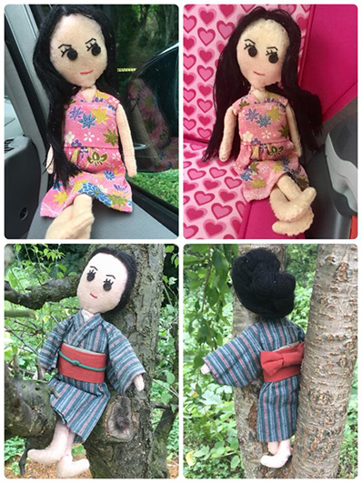 23年前に手づくりした「自画像マミリン人形」和洋2タイプ。