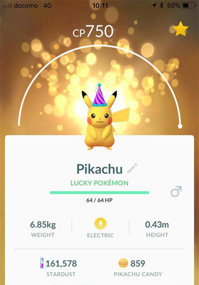 先日、自分史上最強(CP750)キラキラピカチュウをゲット♪