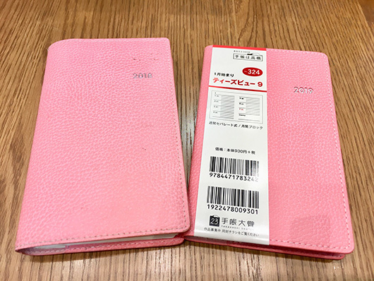 来年のスケジュール帳を購入。何年も使っている同じ型の、同じピンク色です。
