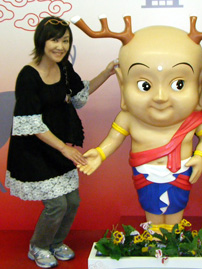 お茶に栄養ドリンクに八面六臂の大活躍。お疲れさま、せんとくん!(笑) |