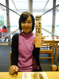 体験。木簡(もっかん)に字を書くお仕事です。字が上手いと出世できるんだそうですよ〜