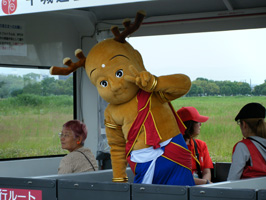 (左)トラムから愛嬌をふりまくせんとくん (右)思わず買ってしまっただっこちゃん型せんとくん