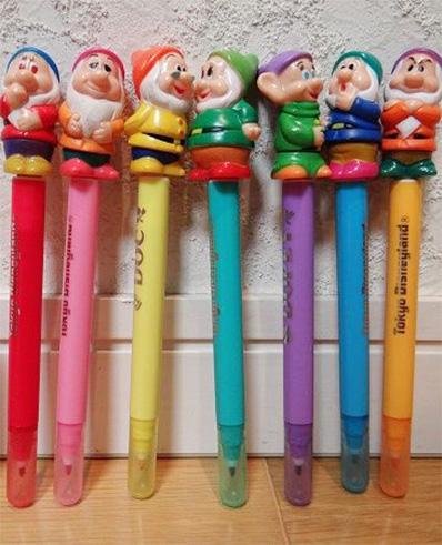 おばあさんはそれでも諦めずにほうぼうを探し回り、むかし東京ディズニーランドで売っていた七人の小人つきペン(7本セット、デッドストック)をオークションで入手。