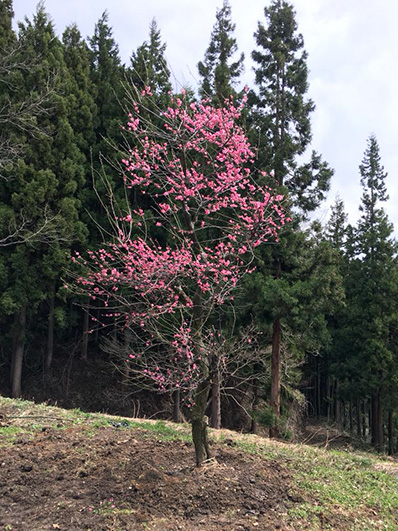 信州の山小屋に植樹された紅梅。
