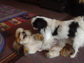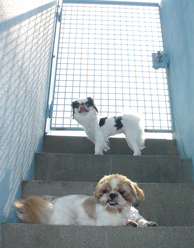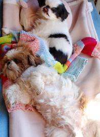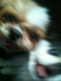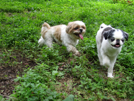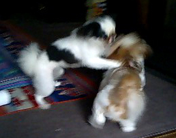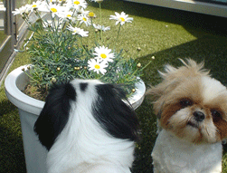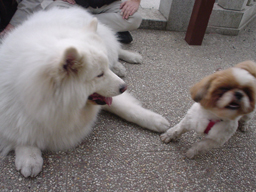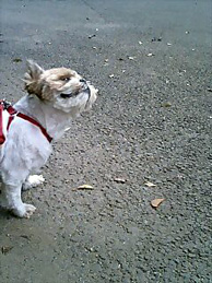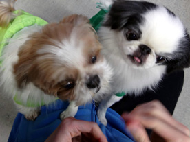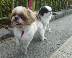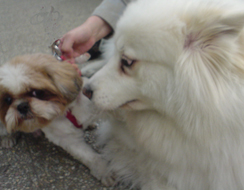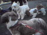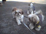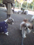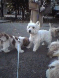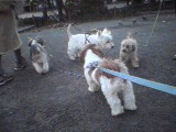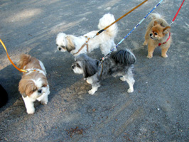 | (注)水色のリードを着けている のがブースケです。 ![]() ①わあ~、友達がいっぱいだ ![]() ③げ。よく見たら男だった(汗) |