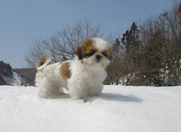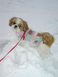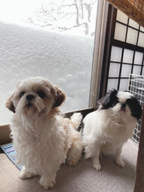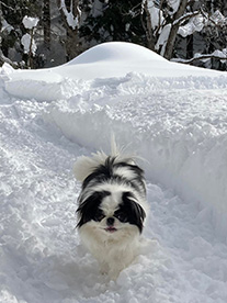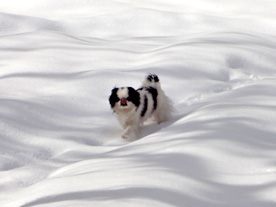 | 雪遊びが大~好きなクースケ。 ドアを開けると自分から飛び出し 新雪の中を転げ回っています♪ 「週刊マミ自身」第694号 |