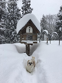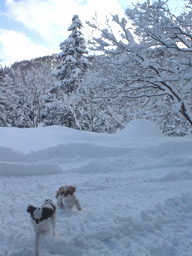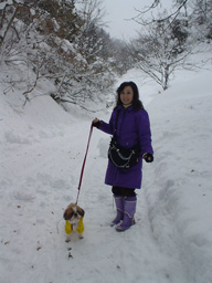 ![]() 雪の日のお散歩(山小屋の前庭にて)。 「週刊マミ自身」第636号 |