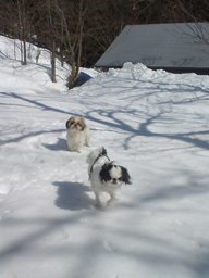 ![]() 4月20日現在、山小屋には残雪が。 溶けかけた雪で泥まみれになりながら 遊ぶクースケ。 「週刊マミ自身」第726号 |