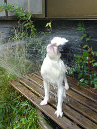 ![]() ノーリードで庭を駆け回りすぎて 暑さにベロが出ました。ちょっと 木陰で一休み。 「週刊マミ自身」第688号 |