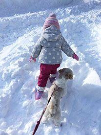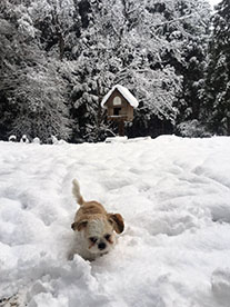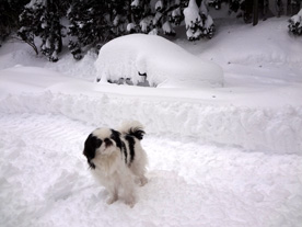 「相変わらず雪が大好きなクー スケ。後方ではジムニーが雪に 埋没しかかってます(苦笑)。 「週刊マミ自身」第656号 |