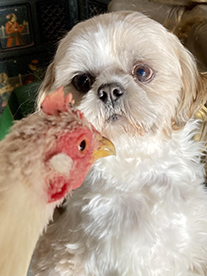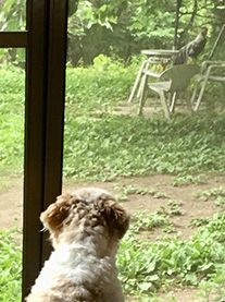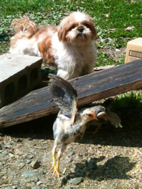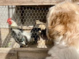 ![]() クースケの趣味はニワトリ観察。 この日も飽かず眺めていました。 「週刊マミ自身」第704号 |