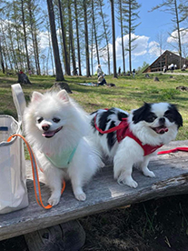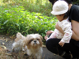 ![]() 飯綱高原・大座法師池の ほとりで遊ぶソラちゃん (左)とピアノ(右) 「週刊マミ自身」第685号 |