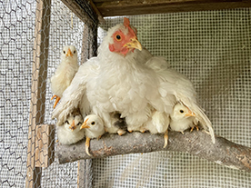 ![]() 庭を自由に歩き回るニワトリさん一家。 「週刊マミ自身」第645号 |