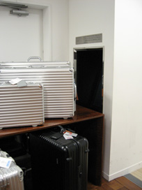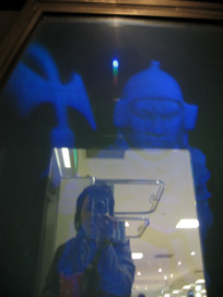 店員さんのなかにも、せっかくの七福神の存在に気づいていない(あるいは、気づいていても価値を認めていない?!)人がいるようで、弁才天の前などは商品のスーツケースが山積み。そばに近寄るのがやっとの状況でした。 |