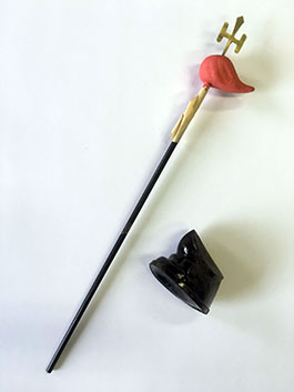 三叉戟の赤色の部分は、本物の辰砂(しんしゃ)を使って修繕したんですよ。