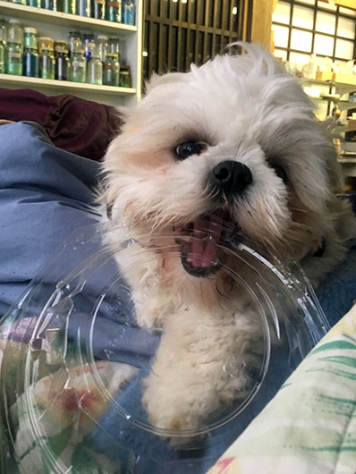 下は今週のオマケ画像。可愛くてお調子者のクースケの変顔写真を4コマ漫画風にアップしましたので、どうぞご笑覧くださいマセ(笑)。 |