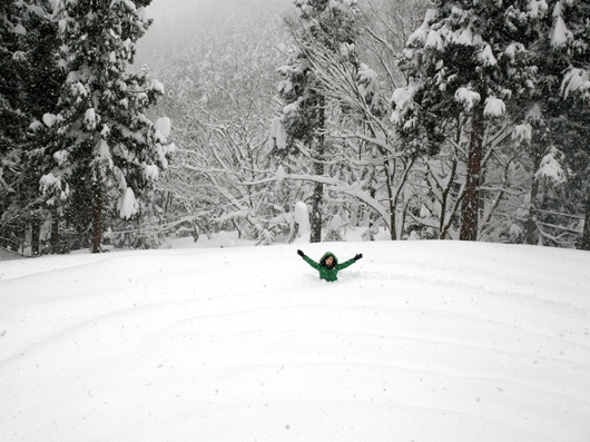 こうして寝転がると雪の中は存外温かく、冬眠中のクマさんの気持ちが少しわかるような(笑) |