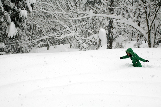 いちばん雪の深そうな場所を目指して移動中
