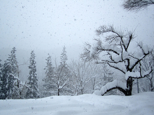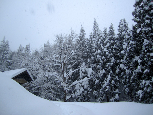 ……というわけで、こちらは写真のとおりの大雪です。日本でも有数の豪雪地帯ですから大雪が降るのは当然なのですが、今年の雪は妙に軽くてサラサラしている点が変といえば変かも知れません。