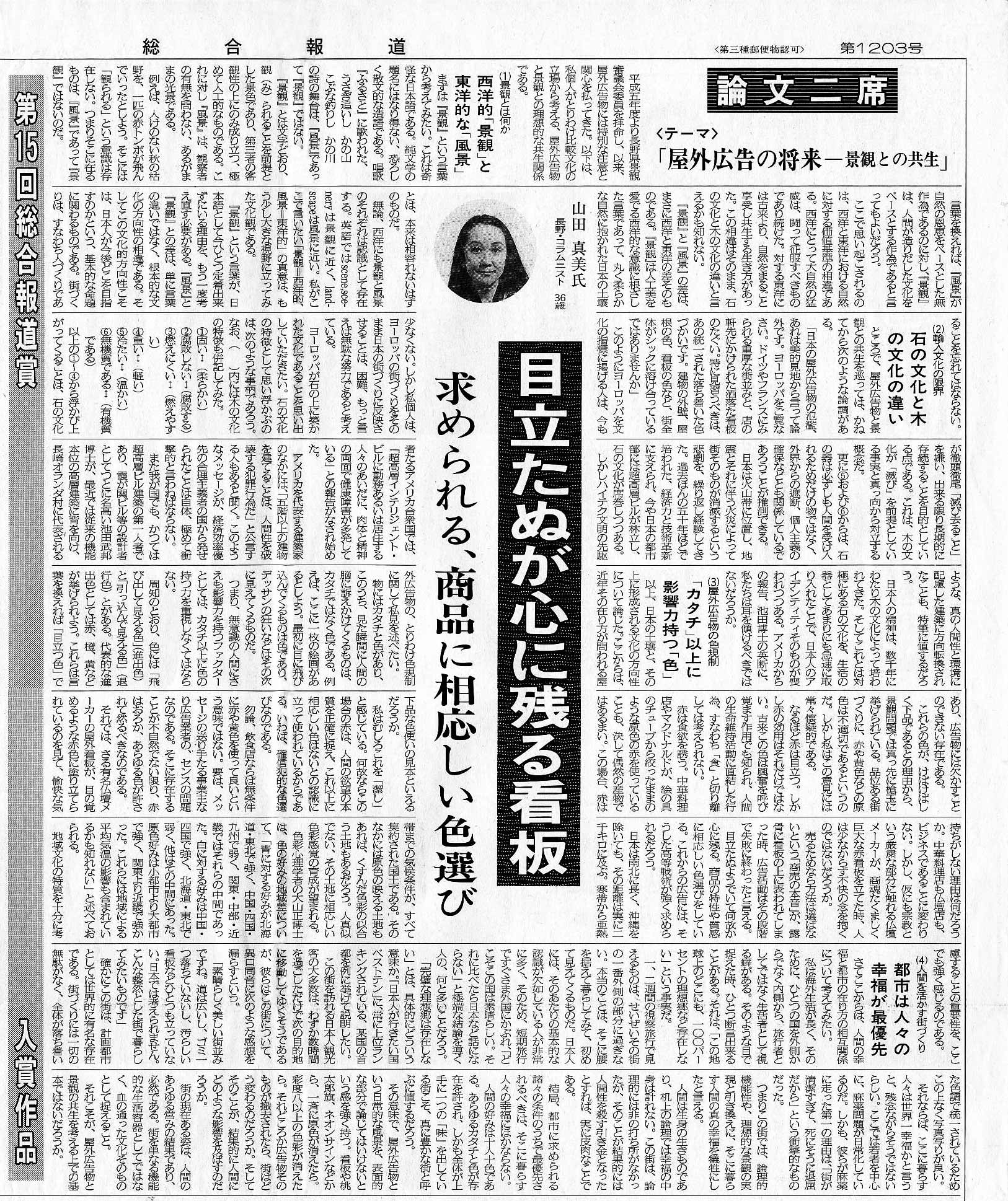 1996年総合報道賞 論文二席受賞『屋外広告物の将来―景観との共生』(山田真美)
