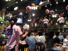 聞こえる絶叫をBGMに歩いてゆくと、目指す「ベースボール・カフェ」が見えてきました