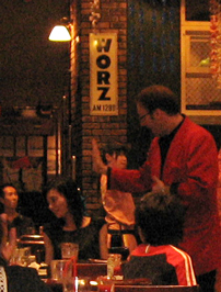 | 翌15日(金)は、台湾から一時帰国中の天文学者・阿部新助さん(台湾国立中央大学天文研究所助教授)を囲んでのプチ飲み会。 |