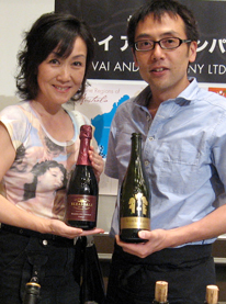 (左)豪州ワイン輸入販売会社ヴァイアンドカンパニーの唄淳二さんと。私が手にしているのは