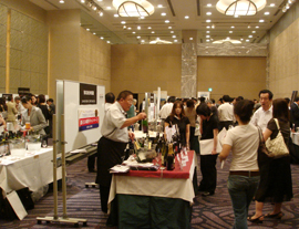 Ridgeのセミヨンスパークリングワイン (右)会場内の様子 |